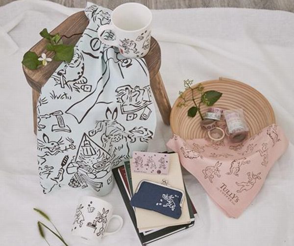 タリーズコーヒージャパン株式会社は、手ぬぐいブランド「かまわぬ」がデザインする「鳥獣戯画」シリーズのアイテムを7月19日から販売開始すると発表した。