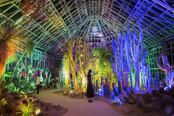 会期中の休館日は、9月と10月の火曜(10月22日は開館で翌23日が振替休館/10月29日は開館)。時間はイベントホールのみ9:30〜17:00(入館は16:30まで)で、イベントホールおよび植物館の夜間は8月9日(金)〜9月8日(日)が19:30から、9月9日(月)〜9月29日(日)が19:00から、9月30日(月)〜11月4日(月)が18:30からとなる(いずれも閉館は22:00/最終入館は21:30)。入場料は一般500円(高校生以下無料)。イベントホールか植物館のいずれか一方を観覧する場合は一般300円となる。