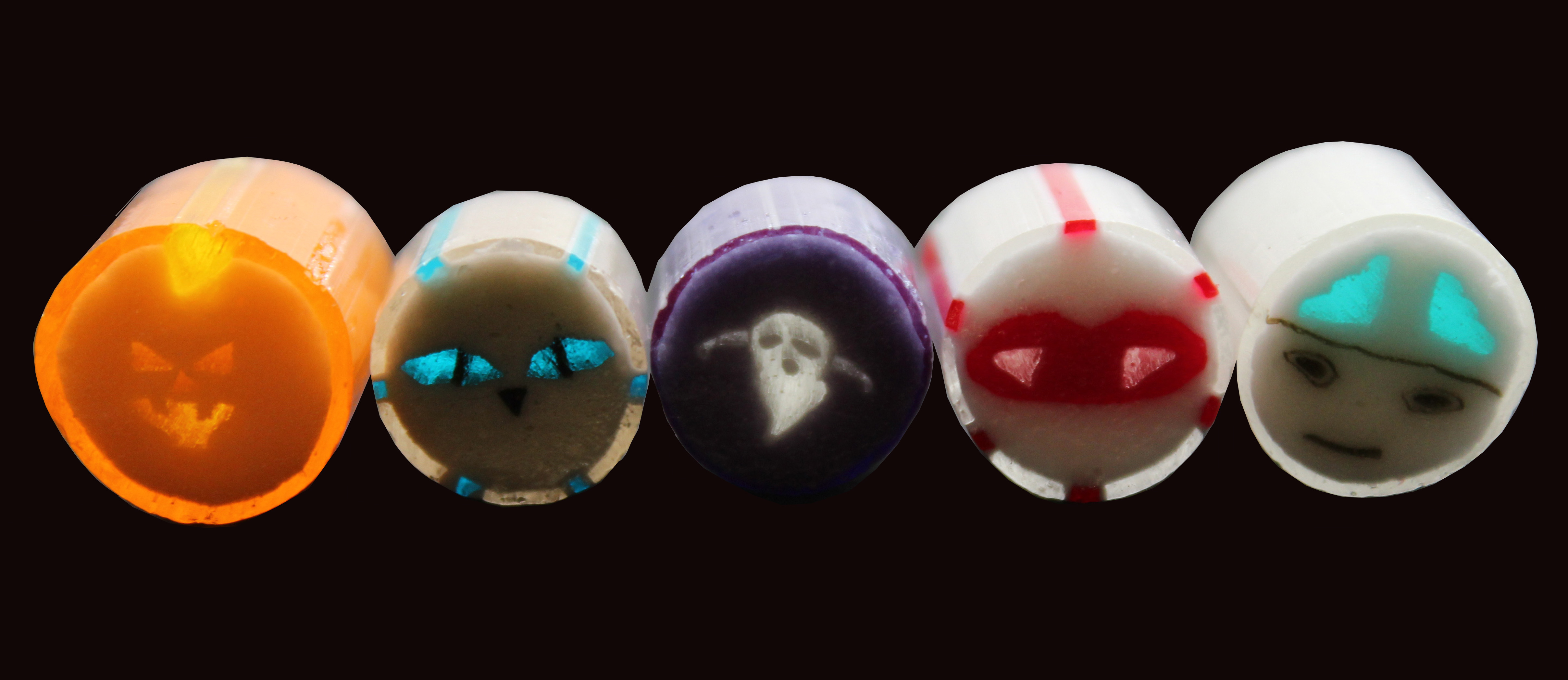 今回、パフォーマンスを行うに至った経緯は、9月下旬に販売したばかりの「暗闇ミックスキャンディ」がはじまり。こちらは、ジャックオランタン(マンゴー)、猫(ライムコーラ)、オバケ(サワーレモン)、牙(チェリーブランデー)、脳みそくん(ソーダ)と、ハロウィンモチーフとなっている。そしてこのキャンディを光に透かすと、柄が浮かび上がってくるのだ。
