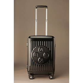 「【PlayStation】 キャリーケース(△○□X ver.)」は、コントローラーのボタンがモチーフ。「PlayStation」に触れた経験があれば、誰でも反応してしまうデザインだ。内生地のロゴはカラーとなっている。