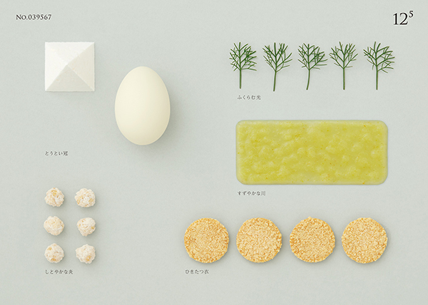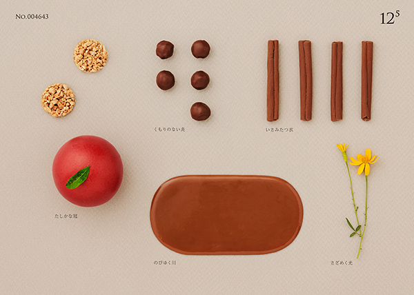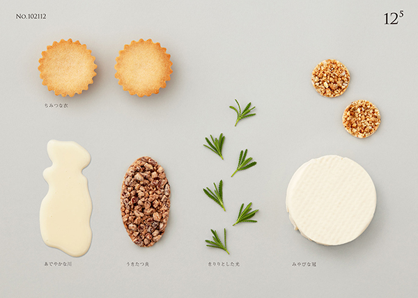『125(12の5乗)-POWER CAKES-』は、西洋占星術にもとづく248,832通りのレシピの中から、“あなただけのクリスマスケーキ”をつくり提供するケーキ店となっている。ケーキをつくる素材のようにプレートに並ぶエレメント。そのお皿の上のひとつひとつが、今のあなたと少し先の未来を占うメッセージになっているのだとか。