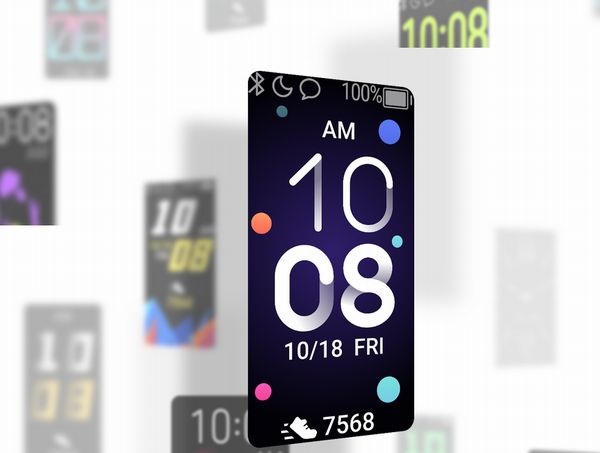 本製品は、0.96インチTFTカラーディスプレイを搭載したスマートバンド。ディスプレイは、2.5Dのカラフルなタッチスクリーン仕様で、多彩なウォッチフェイスデザインを切り替えて使うことができる。