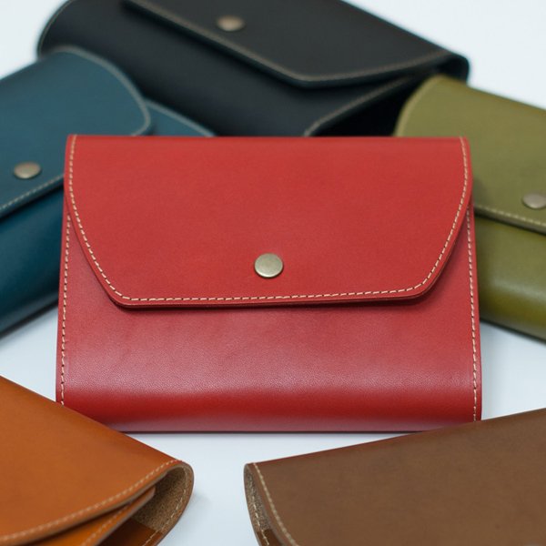 素材として採用されているのは、植物タンニンでなめし、染料で色付けしてオイルを染み込ませてしあげた高級栃木レザー。しなやかでシックな深みのある色合いが特徴である。色は、キャメル、オリーブ、クラシックブラウン、ブラック、レッド、ブルーの6色。