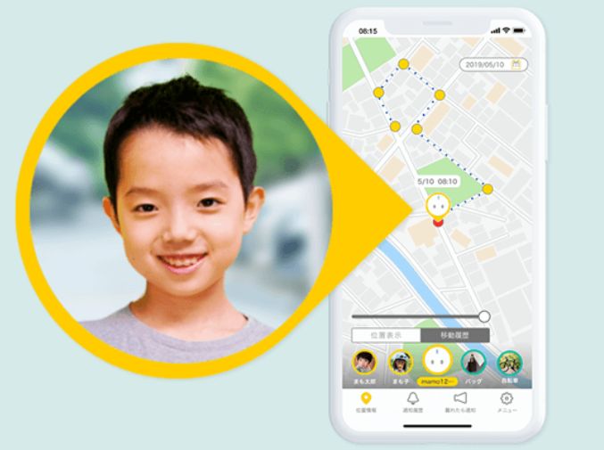 本サービスは、位置情報を把握しておきたい子どもやおばあちゃん、おじいちゃんなどに端末を持ち歩いてもらい、スマホから彼らの居場所を確認できる見守りサービス。