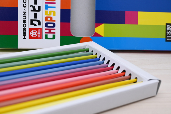 ヘソプロダクションが展開するオリジナル文具ブランド「へそ文-HESOBUN-」より、クーピーペンシルのカラーをイメージした12色の箸セット「クーピー風カラー箸-CHOPSTICKS12-」が登場した。価格は1セット12本で1,350円(税抜)。
