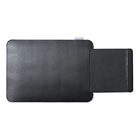 「200-HUS010」のサイズは約W360×D260×H7mm(突起部除く)で、重量は約366g。13.3インチのノートパソコンを置くことができる。マウスパッド部サイズは約W140×D180mmだ。表面には適度な摩擦により操作しやすいPVC素材、裏面には滑りにくいフェルト調の肌触りを採用している。