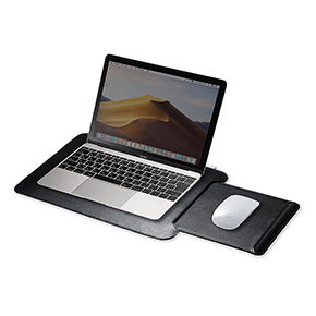 「200-HUS010」は手軽な持ち運びができるノートパソコン用膝上テーブル。薄くて軽いので、バッグに収納がしやすい。本製品をひざの上に置くことで、外出先や車内などでのノートパソコン操作が安定したものになるだけでなく、熱によるムレを軽減する。スライド収納式マウスパッドを内蔵しており、マウスによる操作がしやすい設計となっている。