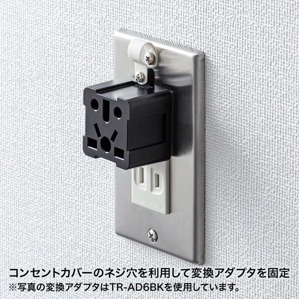 また、アダプタの盗難を防ぐ盗難防止セット「TR-AD6SET」も同時販売されており、公共の場所に設置する際はセット購入がオススメだ。「TR-AD6SET」による固定方法は二種類用意されており、コンセントカバーのネジ穴を利用して、付属のクリップで固定する方法と、強度のあるアラミド繊維のケーブルを利用して壁などに木ネジで固定する方法、状況にあった対応が可能となっている。