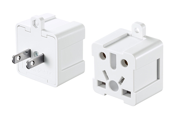 海外7種類のプラグ形状を日本で使用できる変換アダプタ「TR-AD6」。盗難防止ケーブルの設置も可能