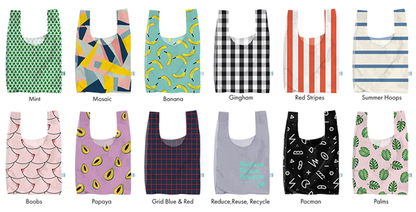 デザインは12種類を展開。「KIND BAG」の名前のとおり、環境にやさしいショッピングライフを提案するお洒落なアイテムとなっている。