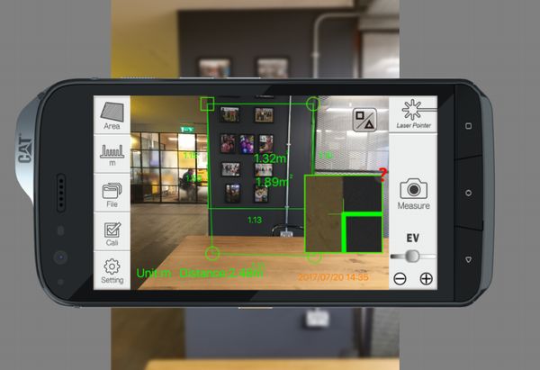 本スマホはAndroid 9.0 Pieを搭載したAndroidスマートフォン。インテリアデザイナー、保険査定人、不動産業者、DIY、消防士などをターゲットユーザーとし、住宅補修見積、間取りの測定、補修面の算定、事故現場の測定などで使える堅牢性の高いタフネススマホの上位モデルだ。