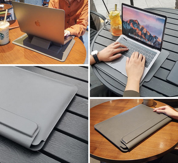 同製品は、軽量かつ持ち運びに便利で、ラップトップスタンドやリストレストとしても利用できる3in1のノートPCケース。高品質レザーとライチパターンが刻印されたケースは保護性能に優れ、撥水性、放熱性、耐摩耗性も保持。厚さはわずか20mm、重量420gとスリムで携帯に適した設計だ。