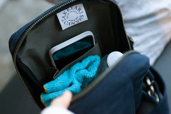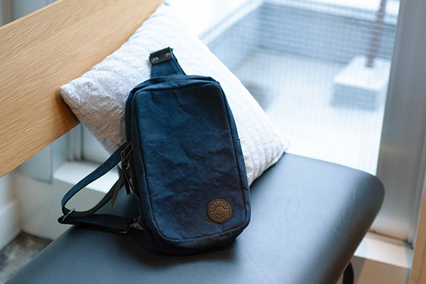 本製品はタイガー帆布シリーズのワンショルダーより登場する新色ネイビーだ。タイガー帆布は、自衛隊のテントにも使われる強力なパラフィン加工を施しており、撥水加工の丈夫な生地。2ルーム仕様で、メインルームは500mlのペットボトルが入る容量となっている。文庫本や財布を収納できるので、ちょっとした外出やサイクリング、アウトドアなどのシーンで利用しやすい大きさだ。