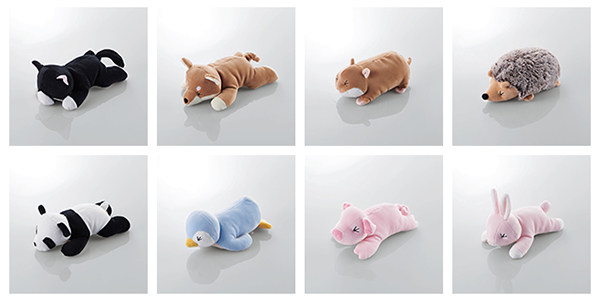 サイズはネコとイヌが約200(幅)×110(高さ)×70(奥行)mm、ハムスターが約180(幅)×88(高さ)×65(奥行)mm、ハリネズミが約170(幅)×95(高さ)×70(奥行)mm、パンダが約193(幅)×115(高さ)×70(奥行)mm、ペンギンが約185(幅)×115(高さ)×70(奥行)mm、ブタが約180(幅)×92(高さ)×100(奥行)mm、ウサギが約162(幅)×105(高さ)×110(奥行)mm。重量は28.7〜35.4g。