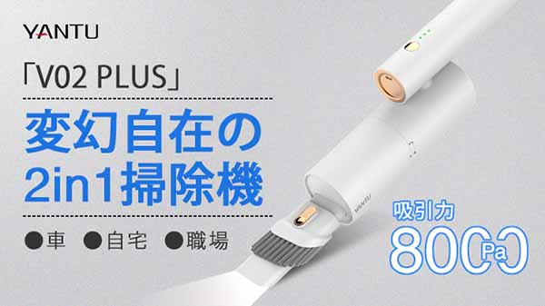 鑫三海株式会社は3月23日、「V02 PLUS」の発売を発表した。8000Paの強力吸引ができる小型掃除機。クラウドファンディングサイト「Makuake」にて、早割価格7,280円(税込)からで販売している。