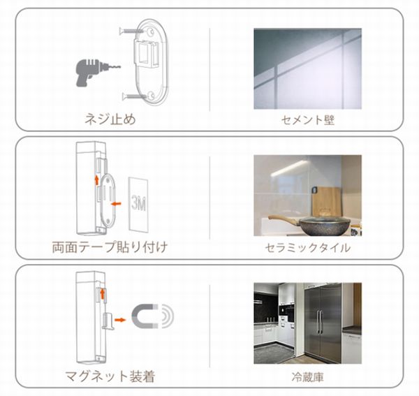 テーブルに置くだけや壁にホルダーを装着して脱着可能にするなど、設置方法も自由度が高い。
