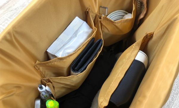 収納は、内側にサイズの異なる5つのポケットと側面にメッシュタイプの2つのポケットを搭載。