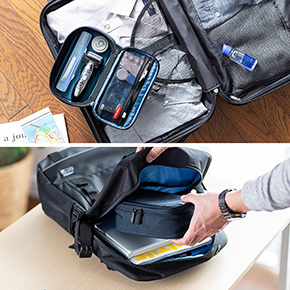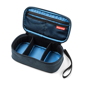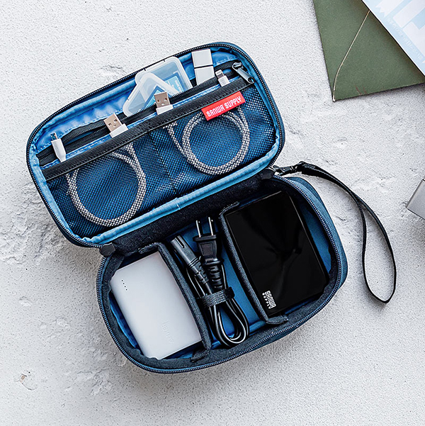 本製品は、モバイルバッテリーや充電ケーブルといった、パソコンやスマートフォンの周辺機器をまとめて収納できるアイテム。間仕切りは2つ付いているが取り外すことができ、収納物に合わせたレイアウトで使用できる。フルオープンタイプを採用しており、大きく開いて収納物を一目で確認可能だ。旅行や出張など、複数のケーブル等を持ち運ぶ際に役立つ。また、内側には中身を確認しやすいメッシュポケットを搭載。ストラップ付きで持ち運び時の落下を防止する。