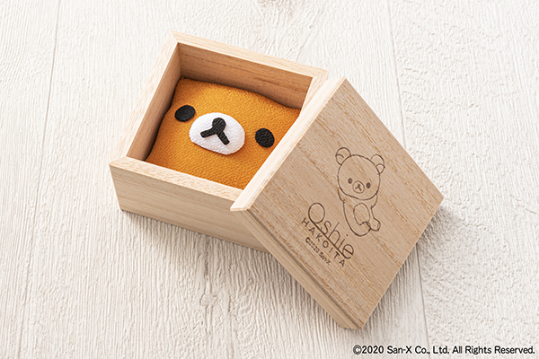押絵とは、厚紙に布を張り綿を入れて立体的に表現するもの。キュートなキャラクター達の顔を、ひとつひとつ職人の手しごとにより細部まで丁寧に作り上げ、ふっくらとした立体感のあるリラックマたちが、箱の中から覗き込んでいるような、手作りならではの温かみある風合いに仕上げている。