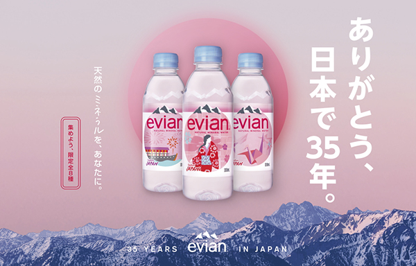 エビアン®日本上陸35年を記念したデザインボトル8種が登場