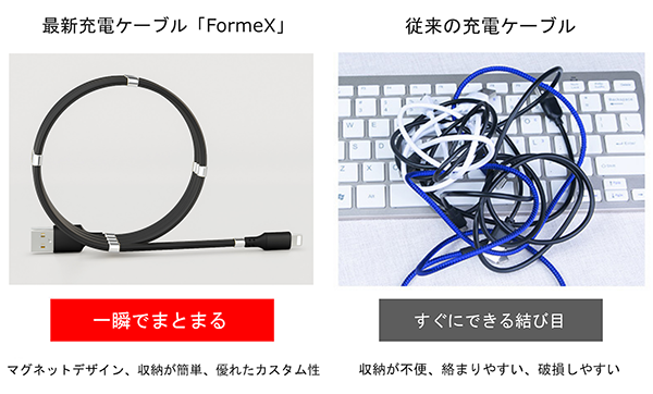 もう絡まらない! マグネット採用で一瞬でまとまる充電ケーブル「FormeX」