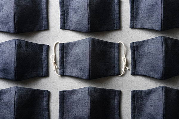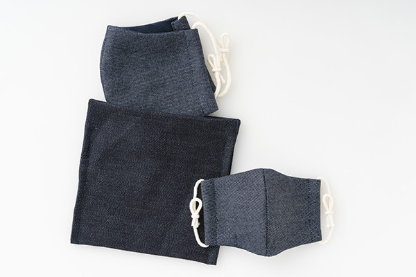 「岡山デニムマスク」は岡山の高級デニム素材を使用した布マスク。表地には薄手の岡山デニム、裏地にはコットンリネン生地を使用している。原材料の岡山デニムは、綿花作り、染めや洗い加工などすべての工程を一括で管理し、国産ならではの高品質を実現。