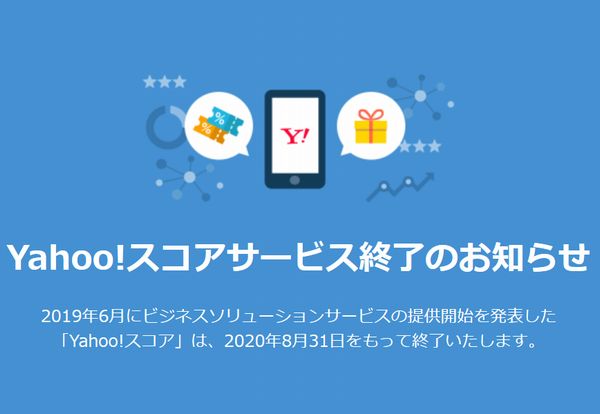 Yahoo! JAPANは、ビジネスソリューションサービスとして提供していた「Yahoo!スコア」について、2020年8月31日でサービスを終了すると発表した。