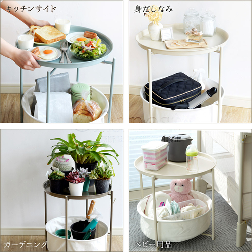 工具不要の簡単組み立てに加え、使わないときは折り畳んでの収納も可能。キッチンからリビング、そしてベッドルームへ。ライフスタイルに合わせて、お気に入りの場所での便利な暮らしを持ち運べる便利なサイドテーブルとなっている。