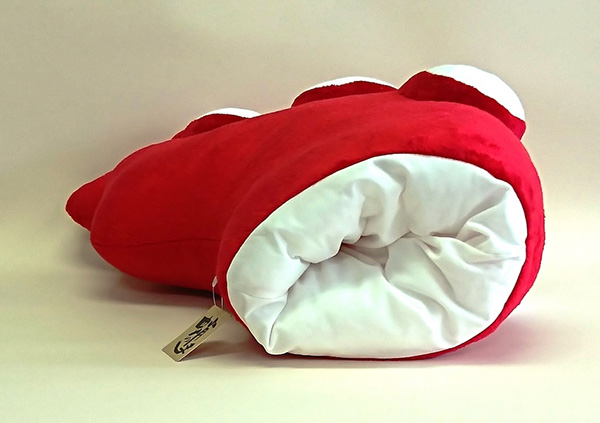 本製品は蛸の手をモチーフにした、存在感のすごさが特徴のクッション。手のスタイルは2種類あり、ぐるっと巻いてあるものと伸びているものがある。巻いているタイプは約56cmで、伸びているタイプは66cmとどちらも特大サイズだ。綿を詰めたしっかりとした構造となっており、中心部が空洞なので手を入れて昼寝用まくらとして利用することもできる。