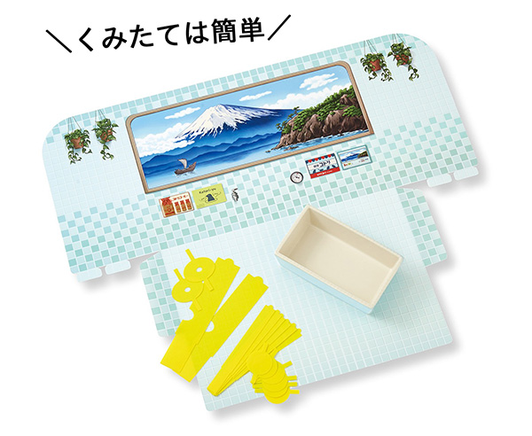 「レトロなお風呂で水浴びできちゃうバード銭湯」は、浴槽に磁器を使用した本格的なミニチュア。水浴びする小鳥の姿を写真に収めたくなるかわいらしいデザインだ。富士山の銭湯絵、黄色いおけといす、へり部分にタイルをイメージしたくぼみが付いた浴槽、と銭湯ならではのレトロな雰囲気が漂っている。また、小鳥だけでなく、ハムスターやぬいぐるみの水浴びの撮影にも使用可能だ。