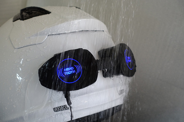 「HeadTooth」は、走行中ハンズフリーで使用できるマイク搭載スピーカー。骨伝導を利用する仕組みでヘルメット内部全体がスピーカーとなり、耳をふさぐことなくナビアプリなどの音声を聞き取ることができる。Bluetoothによるワイヤレス接続で、ボタンを1回タップすると通話ができるタッチコントロール仕様だ。防水対応なので屋外での使用が可能。