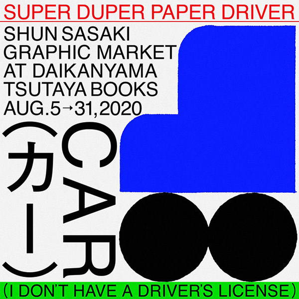 2020年8月5日(水)から8月31日(月)まで、代官山 蔦屋書店 2号館 1Fのギャラリースペースにて「SHUN SASAKI GRAPHIC MARKET"SUPER DUPER PAPER DRIVER" AT DAIKANYAMA TSUTAYA BOOKS」が開催される。「JAGDA新人賞2020」を受賞したグラフィックデザイナー/アートディレクターの佐々木俊氏にフィーチャーしたフェア企画。ギャラリースペースを使って、佐々木氏が自由な表現を展開している。