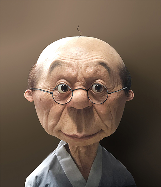 注目の展示の1つである「リアルサザエさん」では、顔の形から目、耳、鼻、口の細部に至るまで、特殊メイクによって、サザエさん一家を等身大で再現。特殊メイクアーティストのAmazing JIRO氏が率いる“自由廊”軍団の手で精巧な再現が実現されており、1本ずつ植え込まれた髪の毛や毛穴やシワのエイジングまで、リアルな表現を楽しめる。