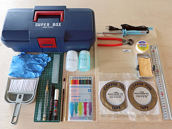 材料や工具やレッスンDVDなどがセットになった「ステンドグラス制作キット」が登場