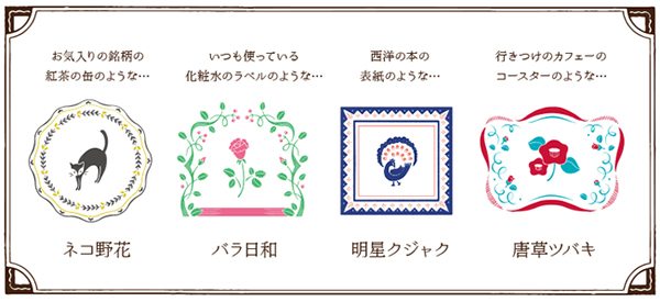 「オトメ図案室」の商品では、大正ロマンから昭和モダンの時代に愛された図案の数々をモチーフとし、和と洋が調和した当時の雰囲気を味わえる。スライドミラーでも、装飾的なデザインが施されたロマンティックかつモダンなモチーフを採用。スライドミラーのほかにも、メモパッド、マスキングテープ、レターセット、ミニカード、ペン、ポーチといった多彩なアイテムを展開している。