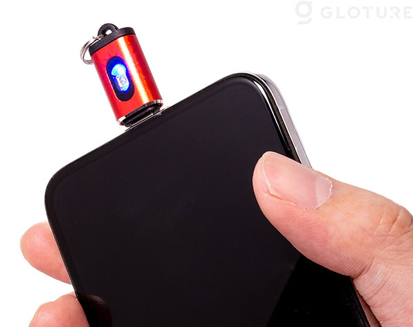 スマートフォンに接続するだけでライトの電源が付くようになっており、電源はスマートフォンから取るので、重量はわずか4gのコンパクトさ。キーリングがついていて、キーホルダー等につけて持ち運ぶことができるようになっている。