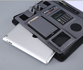 「EGO」は、ビジネスツールとして使用しやすいよう多様な機能を備えたフォルダー。充電機器やノートブックとしての役割を担う。収納ポケットは、USBケーブル、クレジットカード、13.3インチのノートパソコンに対応。8000mAh大容量バッテリーを内蔵しており、ワイヤレス充電とケーブル充電が可能だ。スマホやタブレット端末を置けるスタンド機能付き。電卓はソーラー充電式となっている。