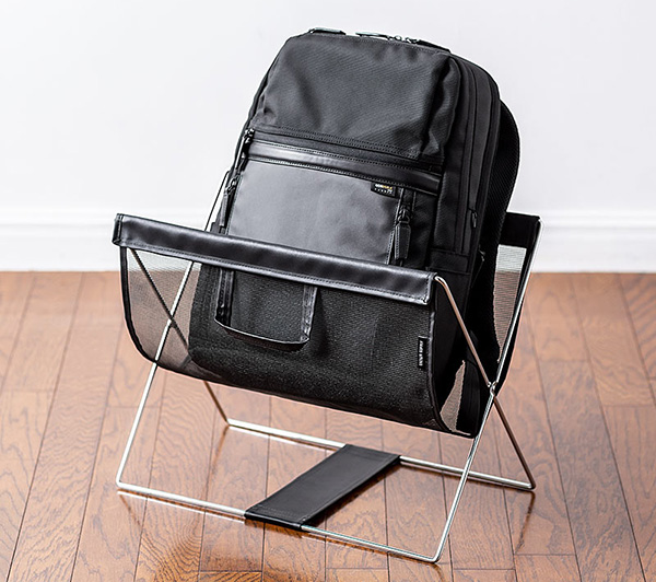 使う時にはワンアクションで設置でき、形状もフレキシブルに変化するハンモック型なので、リュックサックのような大型のカバン入れから、資料入れ、小物を置き場などさまざまな用途で重宝する。
