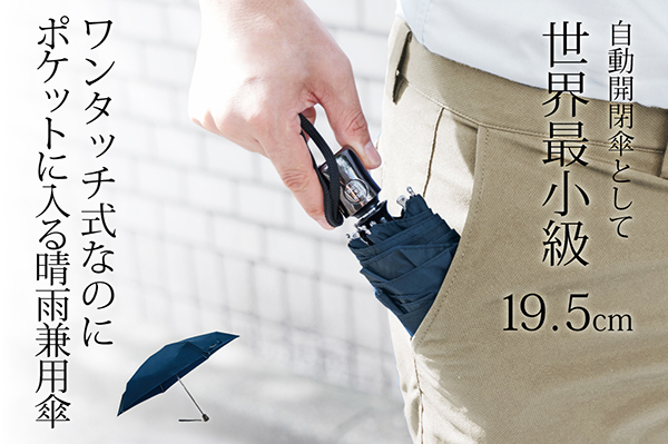 同製品は、折り畳み時の長さがわずか19.5cm。カバンはもちろんのこと、ポケットにも忍ばせることができる超コンパクトサイズの折り畳み傘だ