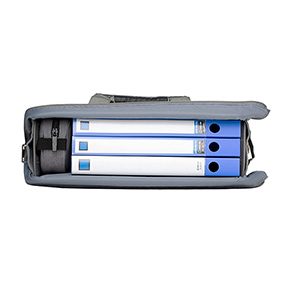 「200-BAGBOX1GY」は、パソコンと書類を収納して持ち運ぶのに便利なボックス型バッグ。形作りがしっかりとしているので、なにも収納していない状態でも自立する。自立式で書類やパソコンの取り出しがしやすいので、テレワークバッグとしてだけでなく、会議などに必要なものをまとめて収納し、移動する場面などにも便利だ。パソコンの収納は15.6型ワイドまで、書類はA4サイズまで対応している。