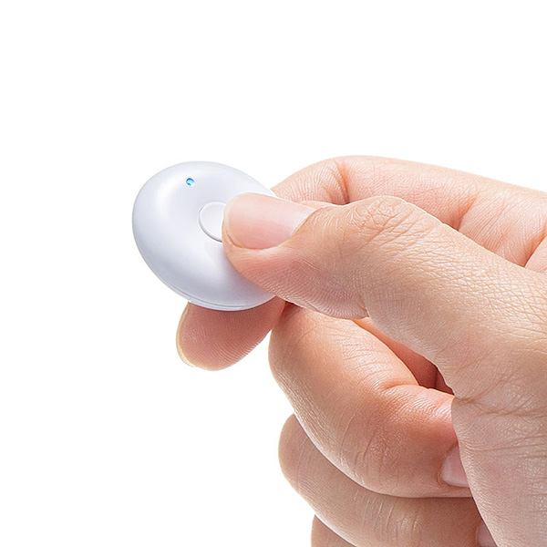 「200-LPP045」は、パワーポイントやキーノートでのプレゼンをサポートするワンボタン式リモコン。進むや戻るといった操作を直感的に行える。超小型なので手軽に持ち運びでき、自然と手に馴染む形状となっている。クリップケースが付いているので、カバンなどに収納せず、胸ポケットに挟んで持ち歩くこともできる。操作はボタンを一回押すとプレゼンソフトの「すすむ」となり、2回押すと「戻る」となる。長押しすることでスライドがブラックアウトする。