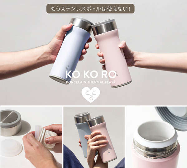 ニコまる、ステンレスと磁器の二層構造ドリンクボトル「KOKOROフラスク」を発売