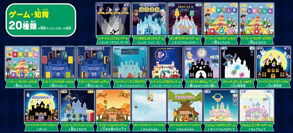 また、本製品にはプロジェクションマッピング機能のほかにも、「ゲーム・知育」「おやすみムービー」「写真・動画の投影」の機能を搭載。「ゲーム・知育」では、専用のマッピングボードと付属のコントローラーを用いて、「アナと雪の女王」や「トイ・ストーリー」などのさまざまな作品の世界観の中で、20種類のゲームや知育クイズを楽しめる。