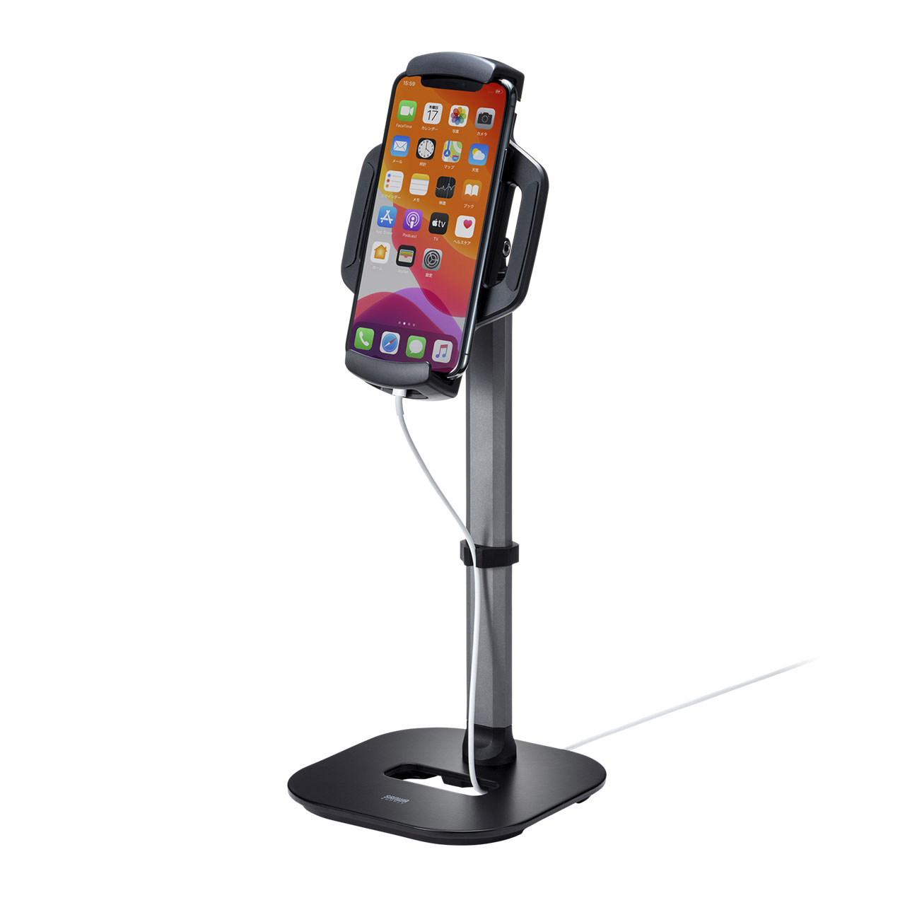 サイズはホルダー垂直時で幅150×奥行き150×高さ385~543mm、重量は約1kg。6~12.9インチまでのスマートフォン、タブレット、モバイルディスプレイに対応する。