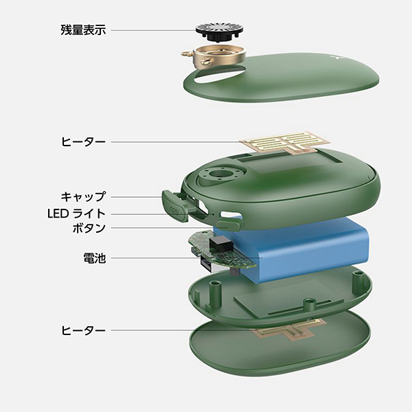 同製品は、即温・両面タイプのエコな充電式カイロ。わずか3秒程で両面があたたかくなり、low(45-50度)/hight(55-60度)の温度調節も可能。