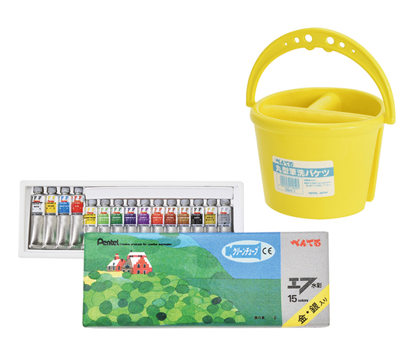 エフ水彩15色セット/丸型筆洗バケツ(ぺんてる)