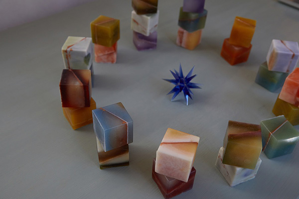 COSMIC CUBEの石けんサイズは約4.8cm×4.8cm×4.8cmで、重量は約135g。全12種類を取り扱う。LANDSCAPE AROMAは全9種類となっている。