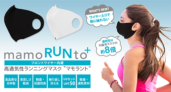 今回のバージョンでは、従来モデル「mamoRUNto(マモラント)」に見られた、「息を大きく吸った時にマスクが口に触れてしまう」という課題も解消しており、より快適に、通気性の良さを実感できる製品となっている。