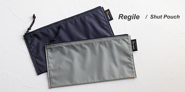 「Shut Pouch」のサイズは約215×115mmで、重量は約21g。カラーバリエーションは2色展開で、ネイビーとシルバーグレーを取り扱う。