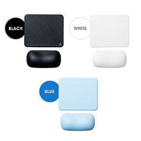 「200-MPD028シリーズ」のサイズと重さはリストレストが約W133×D69×H20mmで約109g、マウスパッドが約W150×D125×H4.5mmで約78gとなっている。カラーバリエーションは3色展開で、ブラック、ホワイト、ブルーを取り扱う。